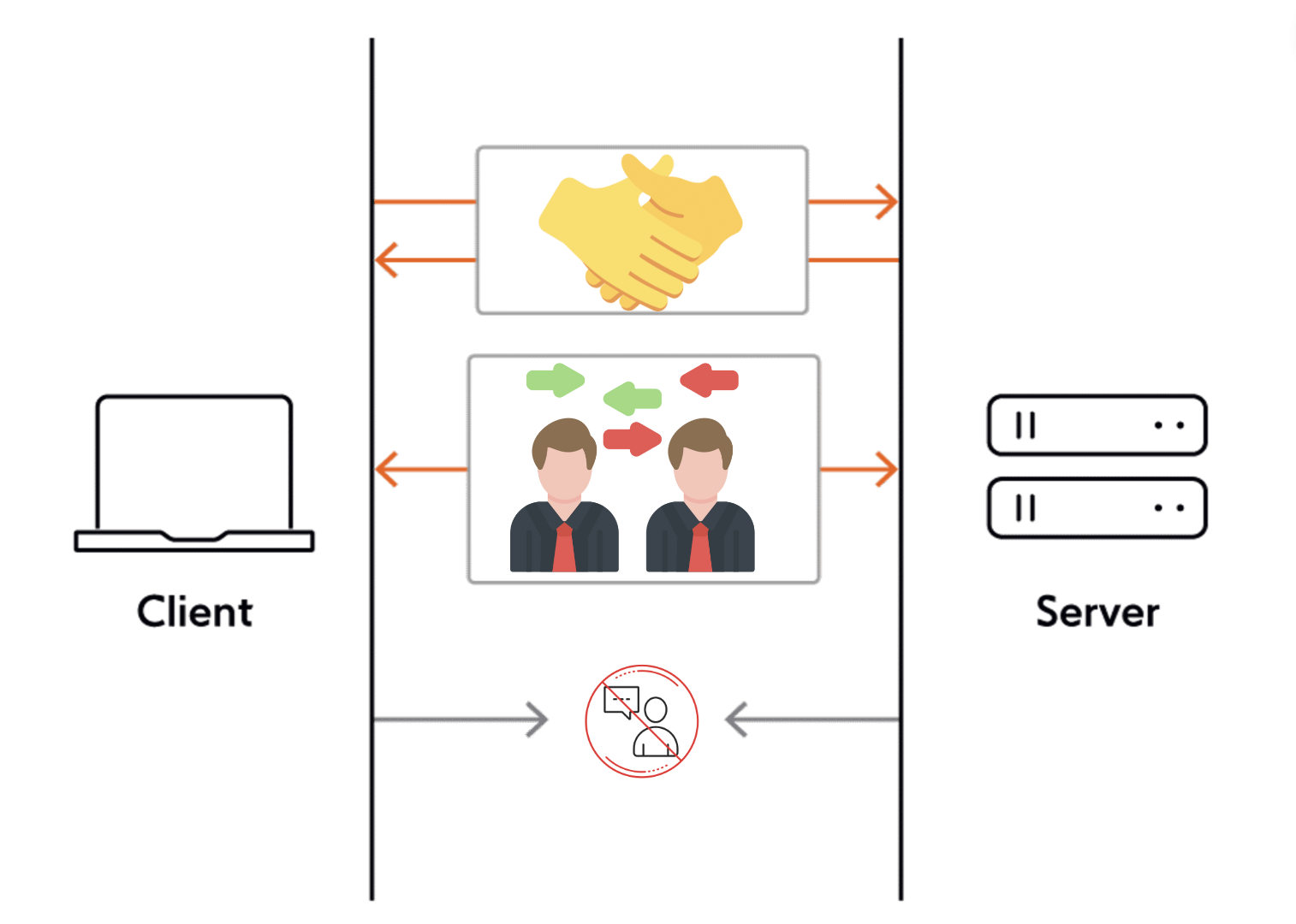 1. HTTP handshake, 2. two-way instant communication, 3. close connection